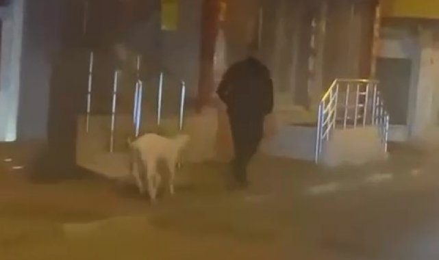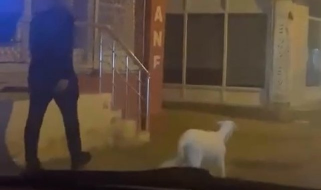 Bursa'da bir vatandaş, eğittiği kuzusunu sokakta dolaştırdı. İlginç anları gören vatandaşlar kayıt yaptı.