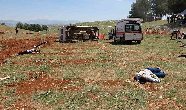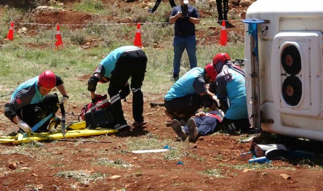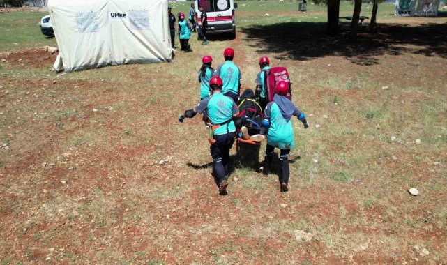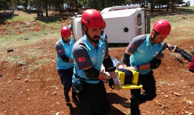Adıyaman'da düzenlenen 'Trafik kazası' tatbikatında zorlu parkurlardan geçen ve afete müdahale eden Ulusal Medikal Kurtarma Ekibi (UMKE) tatbikatı gerçeği aratmadı.