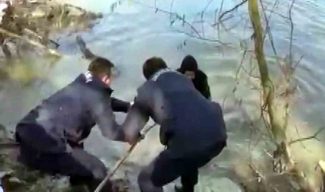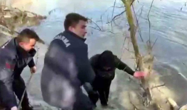Nehre atlayan kadını jandarma ekibi ağaç dalıyla işte böyle kurtardı