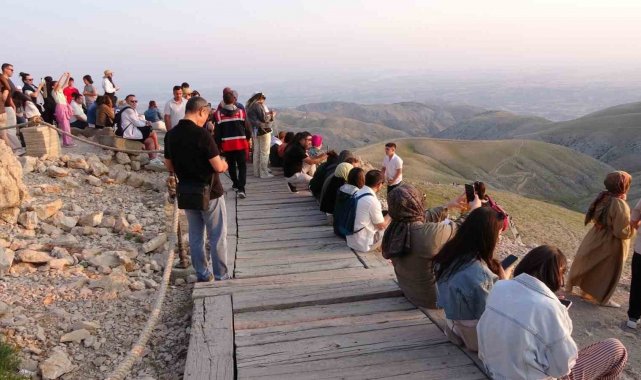 Devasa heykellerin yer aldığı zirveye tırmanan turistler, burada güneşin muhteşem doğuşu ve batışını izledi. Dört günlük Kurban Bayramı boyunca yaklaşık 10 bin kişi zirveye tırmandı. Metrelerce yükseklikteki tümülüs etrafında yer alan heykellere hayran kalan turistler, güneşin batışıyla bu eşsiz güzelliği taçlandırıyor.