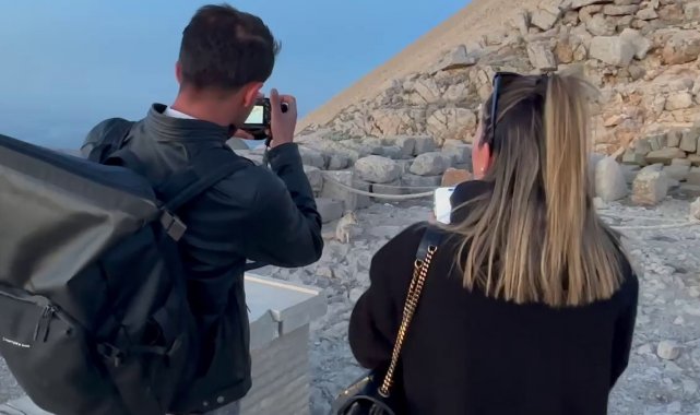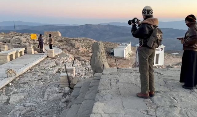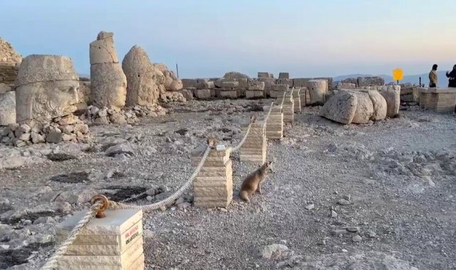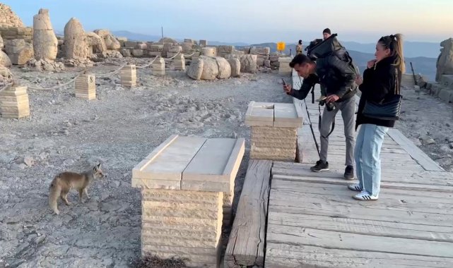 Adıyaman'ın Kahta ilçesinde yer alan Nemrut Dağı'na, yurt dışı ve Türkiye'nin çeşitli yerlerinden güneşin doğuşunu izlemek için sabahın erken saatlerinde gelen yerli ve yabancı turistler tilki sürpriziyle karşılaştı. Güneşin doğuşunu 2 bin yıllık tarihi taş heykellerin yanında çıplak gözle izlemek isteyen turistlerin yanına gelen sevimli tilki, turistler tarafından sevildi. Hiçbir şekilde korkmayan ve oldukça rahat tavırlarıyla dikkat çeken tilki, kendisini görüntülemek isteyen turistlere de adeta poz verdi. Tarihi heykellerin arasında ve turistlerin yanında bir süre dolanan tilki daha sonra bölgeden uzaklaştı.