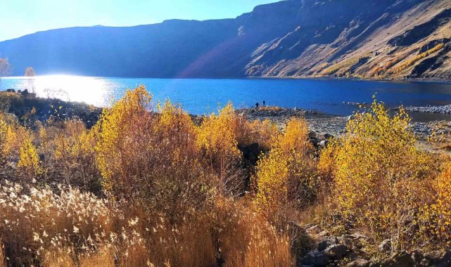 Bitlis'in Ahlat, Güroymak ve Tatvan ilçe sınırları içinde bulunan Nemrut Kalderası, sonbaharın eşsiz renkleriyle birlikte sezonun son ziyaretçilerini ağırlıyor.