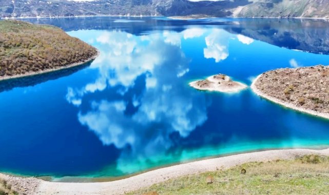Nemrut Krater Gölü havadan görüntülendi: Doğal güzelliğiyle hayran bıraktı