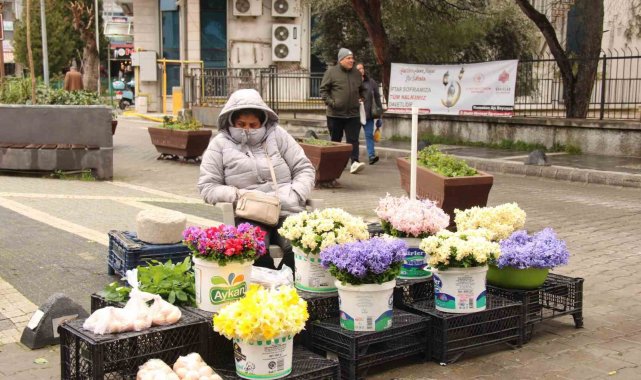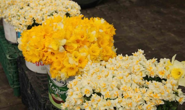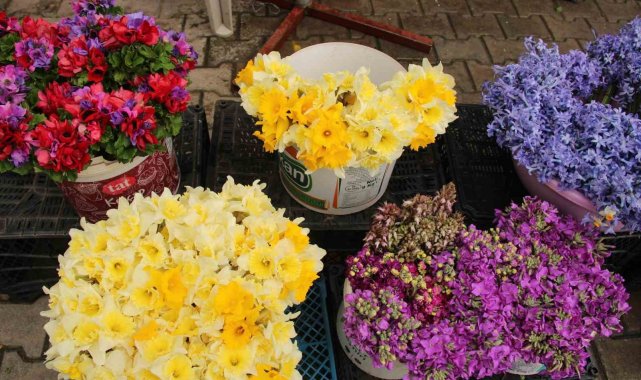 Pazar yerinin giriş kısmında kurulan çiçek tezgahları, hem renkli görüntüsü hem de çevreye yayılan hoş kokusuyla vatandaşların ilgisini çekiyor. Sabahın erken saatlerinde pazar alanına gelen esnaf, yoğurt ve peynir kovalarının içinde sergiledikleri nergis ve sümbülleri satışa sunuyor. Sarı, beyaz ve mor tonlarındaki çiçekler pazara gelen vatandaşların dikkatini çekerken, pazarın girişinde oluşan yoğun koku adeta baharın gelişini müjdeliyor.