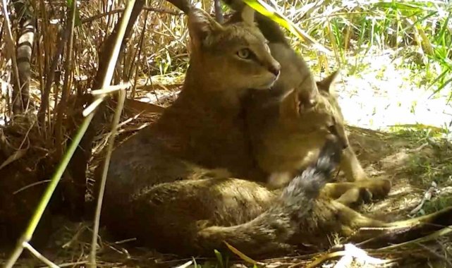 Kırıkkale kırsalında fotokapanlara yakalanan nesli tehlike altındaki saz kedisi, yavrularıyla birlikte görüntülendi.