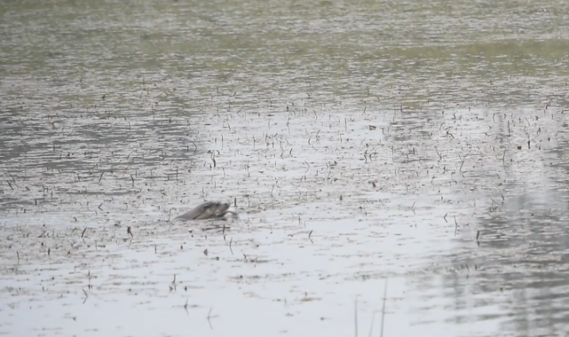 Kısa süreliğine su yüzeyine çıkan su samuru, bir süre sonra gözden kayboldu.
