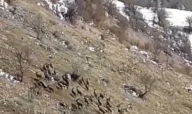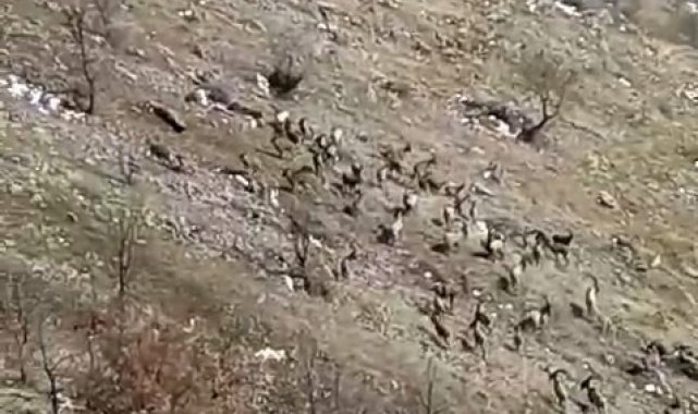 Elazığ'da koruma altındaki dağ keçileri büyük bir sürü halinde görüntülendi.