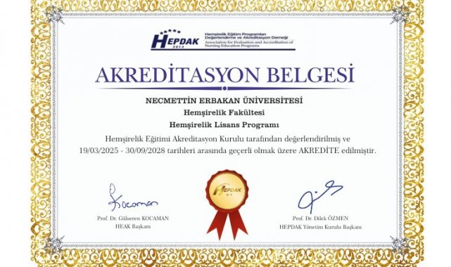 Necmettin Erbakan Üniversitesi (NEÜ) Hemşirelik Fakültesi, Hemşirelik Eğitim Programları Değerlendirme ve Akreditasyon Derneği (HEPDAK) tarafından 3 yıl süre ile akredite edildi.