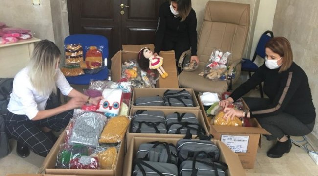 Atkı ve bereler ile birlikte ayrıca depremzede çocuklar için Kadın Çalışmaları Merkezi (KAÇEM) kursiyerleri tarafından dikilen amigurumi bebekleri özenle paketleyen belediye görevlileri, içerisinde çocuk bezi, ıslak mendil, tırnak makası, ateş ölçer, biberon, emzik, pijama takımı, battaniye ve önlük bulunan onlarca çocuk bakım setlerini de İzmir'e gönderilecek tırlara yükledi.