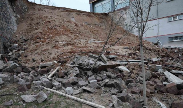 Nevşehir'de yaklaşık 15 metre yüksekliğindeki istinat duvarı çöktü.