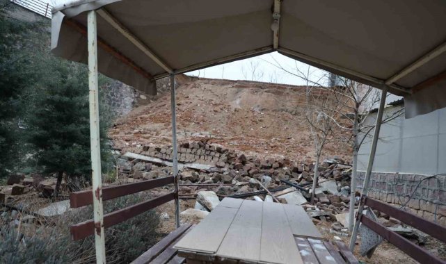 Nevşehir'de 15 metre yüksekliğindeki istinat duvarı çöktü