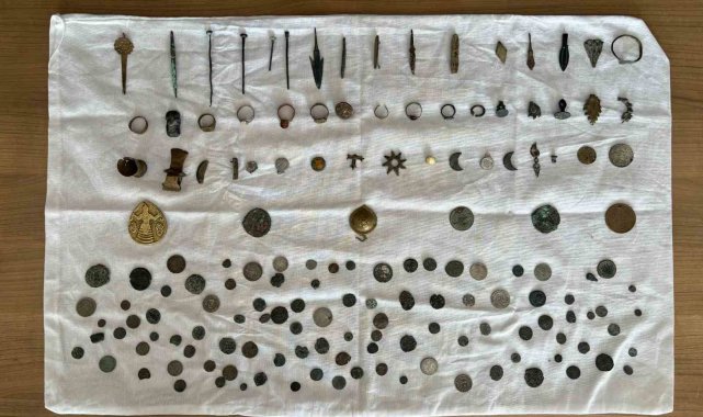 Yapılan operasyonda 107 adet çeşitli ebatlarda ve üzerinde çeşitli ibarelerin bulunduğu sikke olarak değerlendirilen cisimler, 9 adet çeşitli ebatlarda cismi bilinmeyen figürler, 8 adet çeşitli ebatlarda çivi, 6 adet çeşitli ebatlarda küpe, 8 adet çeşitli ebatlarda yüzük, 3 adet çeşitli ebatlarda mühür, 3 adet çeşitli ebatlarda ok ucu, adet kolye ucu, 1 adet minyatür balta ucu ve 1 adet minyatür kupa olmak üzere toplamda 157 adet tarihi eser olduğu değerlendirilen cisimler ele geçirildi.
