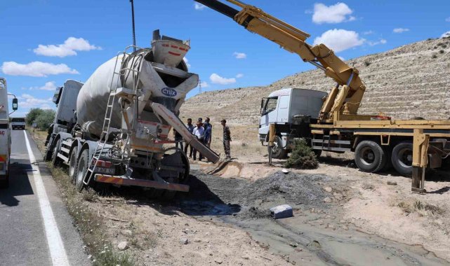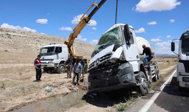 Nevşehir'de kontrolden çıkan beton mikserinin şarampole devrilmesi sonucu meydana gelen kazada sürücü yaralandı.