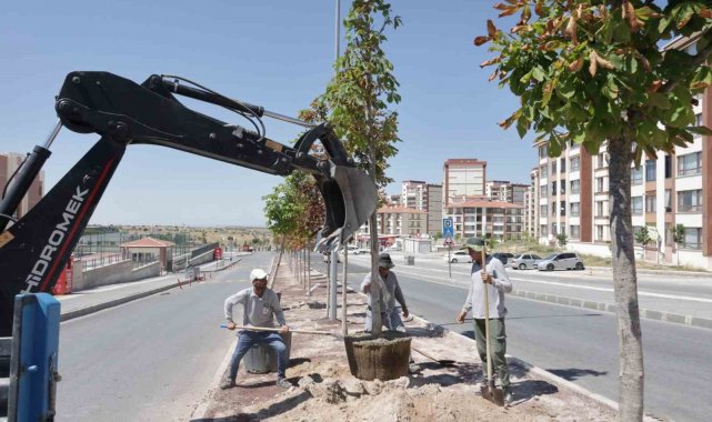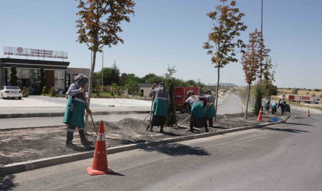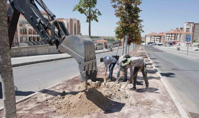 Nevşehir Belediyesi orta refüjlerde ağaçlandırma, çiçek dikimi, çim budama ve çeşitli peyzaj çalışmalarını sürdürürken aynı zamanda modern taşlarla yenileme yapıyor.