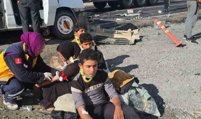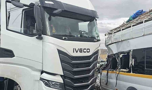 Nevşehir'de tır ile mevsimlik işçileri taşıyan minibüsün çarpışması sonucu 9 kişi yaralandı.