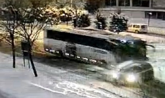 Nevşehir'de şehirlerarası yolcu otobüsü ile otomobil çarpıştı. Kazada yaralanan olmazken, olay anı güvenlik kameralarına yansıdı.