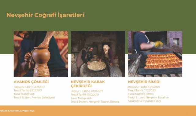 Nevşehir Coğrafi İşaret İl Yürütme Kurulu Ahiler Kalkınma Ajansı koordinasyonunda, coğrafi işaretli ürünlerin Nevşehir'de artırılması ve mevcut potansiyelin değerlendirilmesi için çalışmalarına devam etmektedir. Kurul, ürünleri, üreticileri ve tüketicileri koruyan bu tescil sürecinin yerel kalkınma üzerindeki olumlu etkilerini artırmayı hedeflemektedir. Nevşehir'in sahip olduğu coğrafi işaretli ürünler ve potansiyel değerler, ilin ekonomik kalkınması için stratejik bir fırsat sunarken, aynı zamanda geleneksel kültürün korunması ve bölgenin tanıtımı açısından da büyük önem taşımaktadır."
