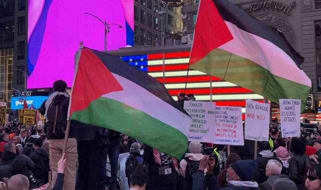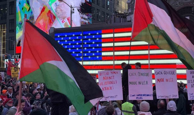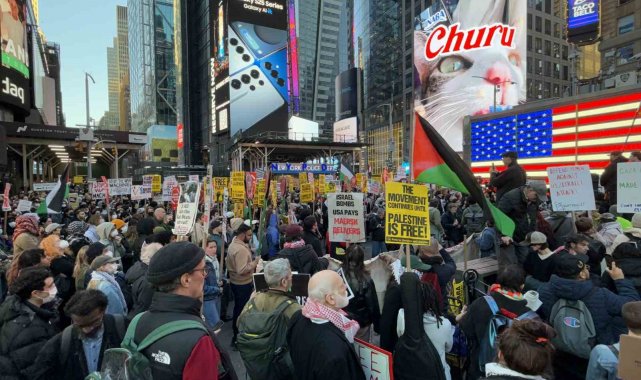 New York'ta binlerce Filistin destekçisi Times Meydanı'nda toplandı