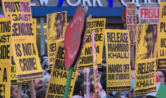 Filistin yanlısı Yahudi aktivist grubu Jewish Voice for Peace (JVP) başta olmak üzere, çok sayıda sivil toplum kuruluşu ve aktivist protestoya katıldı. Göstericiler, "Soykırımı tekrar protesto etmek suç değildir", "Mahmoud Khalil'i serbest bırakın", "Öğrencilerimizden ellerinizi çekin", "Amerika, İsrail'e yardımı kes", "Özgür Filistin, Özgür Gazze" yazılı pankartlar taşıyarak slogan attı.