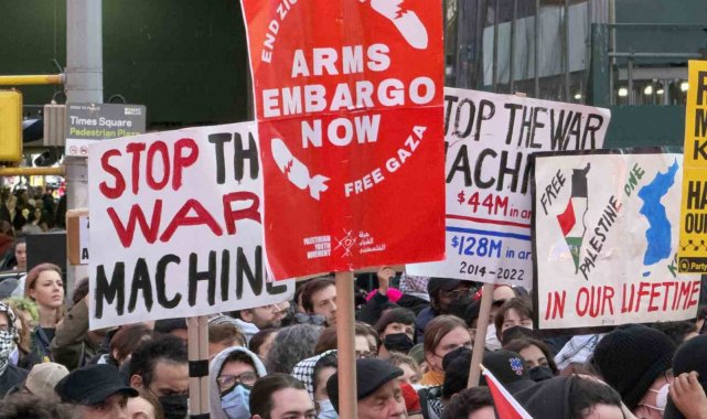 Times Meydanı'nda başlayan protesto, daha sonra yürüyüşe dönüştü. Göstericiler, New York Halk Kütüphanesi'nin önüne kadar yürüyerek burada bir süre slogan atmaya devam etti. New York'un simge yapılarından biri olan kütüphane, protestocular tarafından çevrelenirken, burada yapılan konuşmalarda Gazze'de derhal ateşkes sağlanması için uluslararası topluma çağrıda bulunuldu.