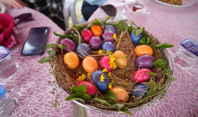 Şenliğe katılan köy sakinleri yemeğin ardından renkli yumurtaları tokuşturdu, müzik eşliğinde dans etti.
