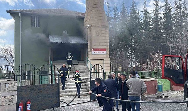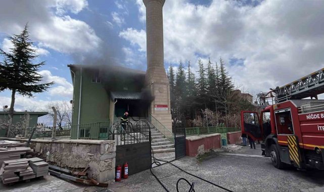 Niğde'de camide yangın, ekiplerin müdahalesi sürüyor
