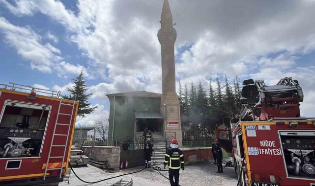 Niğde'de bir camide çıkan yangına ekiplerin müdahalesi sürüyor.