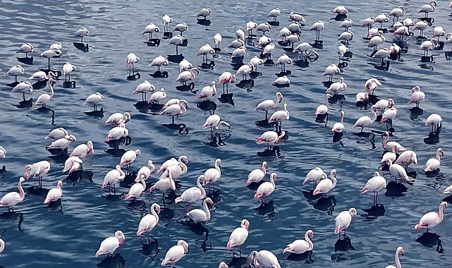 Her yıl olduğu gibi bu yıl da göç yolundaki flamingoların önemli duraklarından biri olan Niğde'deki Akkaya Barajı'nda görsel şölen oluştu. Yüzlerce flamingonun oluşturduğu manzara havadan görüntülendi.