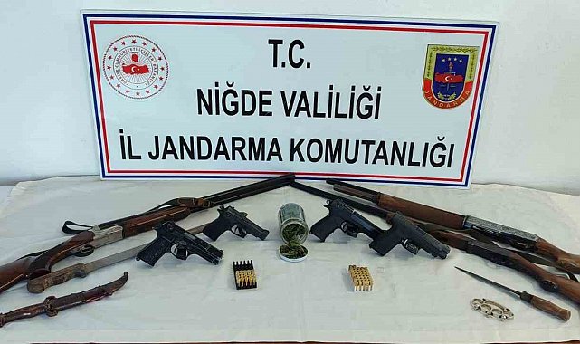 Edinilen bilgiye göre, Niğde Cumhuriyet Başsavcılığı koordinesinde İl Jandarma Komutanlığı ekipleri tarafından uyuşturucu ve ruhsatsız silah ile mücadele kapsamında operasyon düzenlendi. Düzenlenen operasyonda uyuşturucu madde ile 4 adet ruhsatsız tabanca, 3 adet ruhsatsız av tüfeği,1 adet çift taraflı bıçak, 1 adet muşta,1 adet döner bıçağı, 57 adet 9 mm çapında tabanca fişeği, 15 adet 22 cal. av tüfeği fişeği ele geçirildi. Operasyonda 3 şüpheli şahıs hakkında adli işlemler başlatıldı.