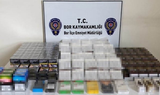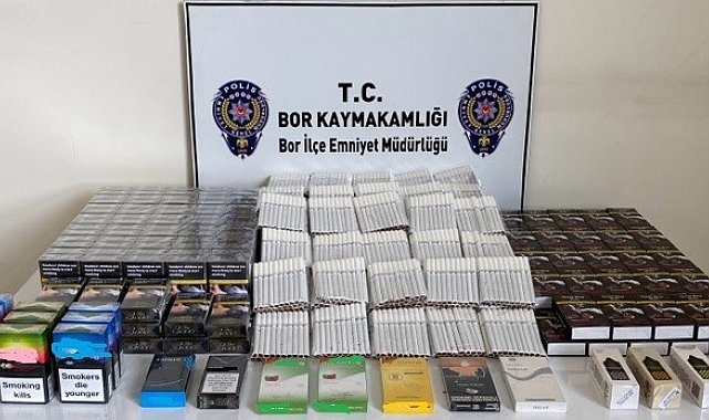 Bor İlçe Emniyet Müdürlüğü Suç Önleme ve Soruşturma Büro Amirliği ekiplerince yürütülen çalışmalar sonucu Y.N. isimli şüpheli yakalandı. Şüpheliye ait iş yeri, ikamet ve araçta yapılan aramalarda 3 bin 680 adet içi tütün doldurulmuş makaron, 100 adet bandrolsüz kaçak sigara ve 4 adet vazol likit kiti ele geçirildi. Ele geçirilen ürünlere el konulurken, şüpheli Y.N. hakkında adli işlem başlatıldığı bildirildi.