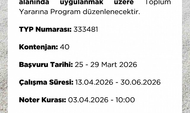 Bunun yanı sıra Niğde Gençlik ve Spor İl Müdürlüğü'ne bağlı birimlerde yürütülecek Toplum Yararına Program (TYP) kapsamında da 40 kişilik istihdam sağlanacak. Bakım, onarım ve temizlik alanlarında görev alacak personel için başvurular 25-29 Mart 2026 tarihleri arasında alınacak. Programın 13 Nisan - 30 Haziran 2026 tarihleri arasında uygulanacağı belirtilirken, katılımcılar 3 Nisan 2026 tarihinde yapılacak noter kurası ile belirlenecek. Kura çekiminin Niğde Gençlik ve Spor İl Müdürlüğü Konferans Salonu'nda yapılacağı bildirildi.