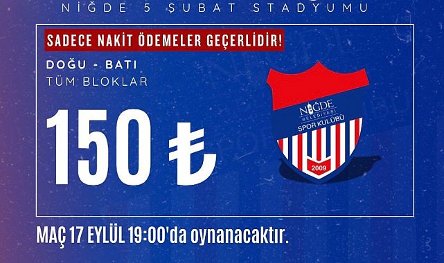 Niğde Belediyespor Kulübü'nden yapılan açıklamaya göre, karşılaşma 17 Eylül Çarşamba günü saat 19.00'da Niğde 5 Şubat Stadyumu'nda oynanacak. Biletlerin satışının 09.00-18.00 saatleri arasında stadyum bilet gişesinden devam ettiği bildirildi. Doğu ve batı tribünleri dahil tüm bloklar için bilet fiyatı 150 TL olarak belirlendi. Kulüp, ödemelerin sadece nakit olarak kabul edildiğini hatırlattı.