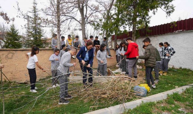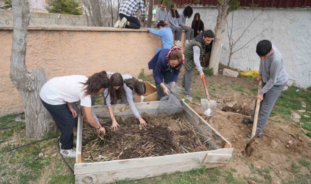Verilen teorik eğitimin ardından kompost yapımını ve yağmur suyu hasadı yöntemlerini öğrenen öğrenciler, okullarının bahçelerinde uygulama gerçekleştirdi.