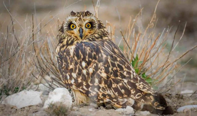 Niğde'nin kuş envanterine onlarca yeni tür kazandıran fotoğrafçı ve kuş gözlemcisi Ömer Kilit, bu kez kır baykuşunu (Asio Flammeus) kayıt altına aldı.