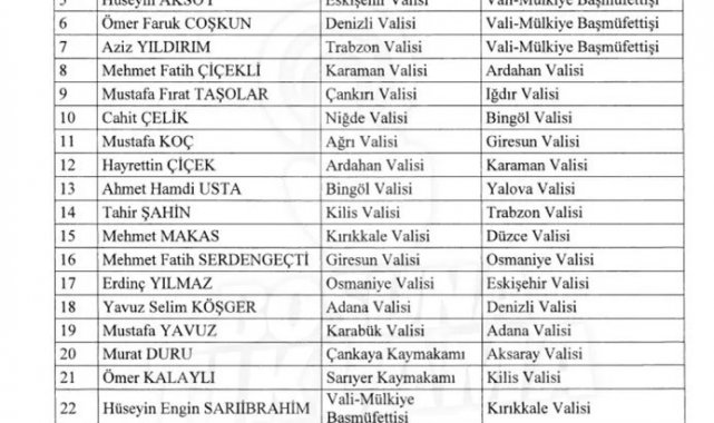 Kararname kapsamında Niğde Valisi Cahit Çelik Bingöl Valiliği'ne atanırken, Niğde'nin yeni valisi Nedim Akmeşe oldu.