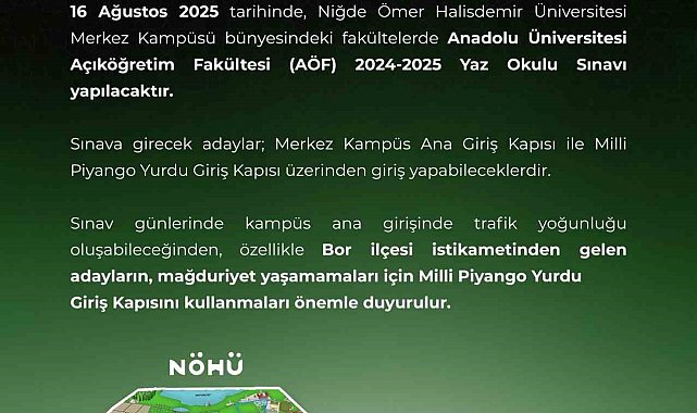 Niğde Valiliği tarafından yapılan açıklamada, sınav günlerinde adayların güvenli ve düzenli bir şekilde kampüse ulaşabilmeleri için bu yönlendirmeye uyulması istendi.
