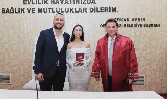 Başkan Aydın, nikahını kıydığı çifte günün anısına hediye takdim etti. Genç çift, sürpriz yaparak nikahlarını kıyan Osmangazi Belediye Başkanı Erkan Aydın'a teşekkür etti.