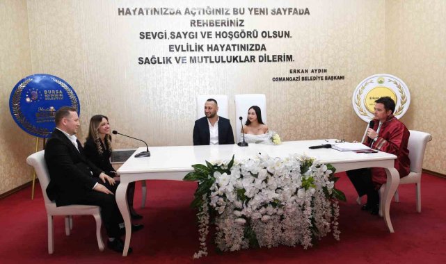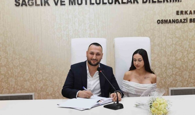 Nikahlarını en özel günde kıydırmak için 14 Şubat Sevgililer Günü'nü nikah tarihi olarak seçen çiftler nikah salonlarında yoğunluk oluşturdu. Osmangazi Belediyesi Merinos Nikah Dairesi de bu özel günde evlenmek isteyen çiftler tarafından yoğun ilgi gördü. Sevgililer Günü'nde her 15 dakikada bir nikah kıyılırken bu özel günde onlarca kişi Merinos Nikah Dairesi'nde nikahını kıydırdı. 14 Şubat Sevgililer Günü'nde evlenen çiftlere sürpriz yapmak isteyen Osmangazi Belediye Başkanı Erkan Aydın, Osmangazi Belediyesi Merinos Nikah Dairesi'nde Minel Kaya ve Oğuzhan Yavuz çiftinin nikahını kıydı. En özel günde nikah tarihi alan çift nikahlarını kıymak için Osmangazi Belediye Başkanı Erkan Aydın'ı karşılarında görünce büyük mutluluk yaşadı. Başkan Aydın, Kaya ve Yavuz, çiftinin nikahını aile bireyleri ve şahitlerin huzurunda kıyarak çiftin mutluluğuna ortak oldu.