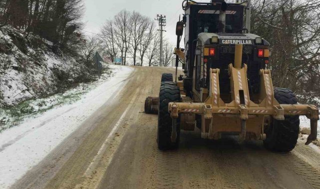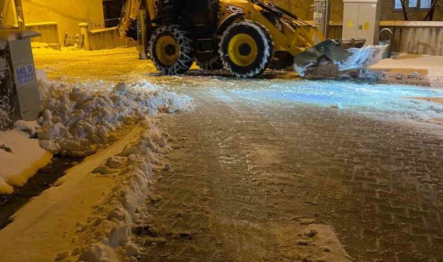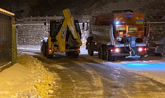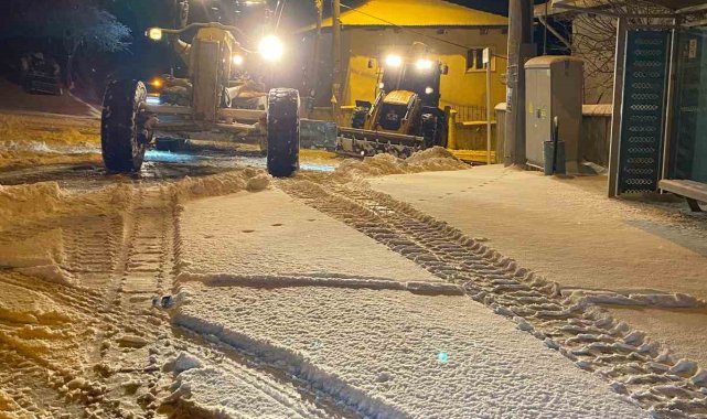 Yolların açık kalması için hem kar küreme, hem de tuzlama çalışmaları aralıksız sürdürülüyor. Ekipler, 10 iş makinesi, 2 bıçaklı tuzlama kamyonu ve 8 normal tuz kamyonu ile kar yağışının hayatı olumsuz etkilememesi için 24 saat aralıksız çalışıyor.