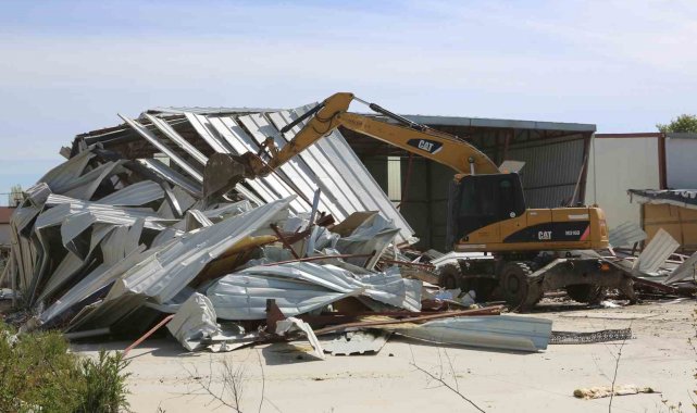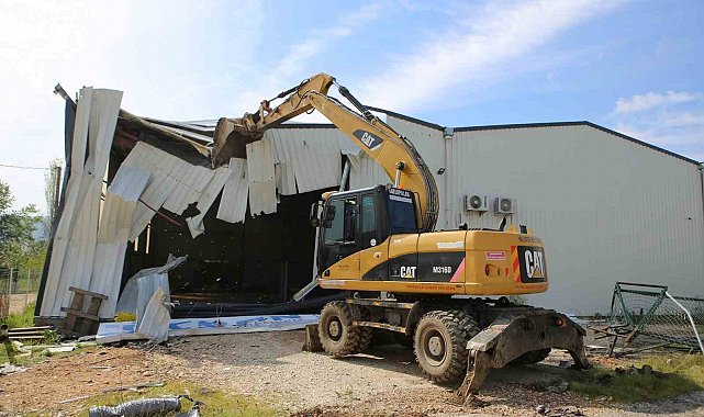 Çevik kuvvet ve zabıta ekiplerinin güvenlik önlemleri eşliğinde yürütülen yıkım çalışmaları kapsamında, ilk olarak Tahtalı Mahallesi'ndeki 800 metrekarelik tarım arazisine yapılan kaçak yapı yerle bir edildi.