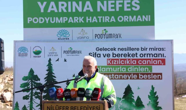 Nilüfer Belediyesi, eğimi yüksek ve tarıma elverişsiz alanları kestane, ıhlamur ve kızılcık ağaçlarıyla gelir getirici ormanlara dönüştürüyor. Bu kapsamda Nilüfer Belediyesi'nin, Yarına Şans Ver Derneği (YASAV) ve Podyumpark Yaşam Eğlence Merkezi iş birliğiyle Güngören Mahallesi'nde hayata geçirdiği "Yarına Nefes Podyumpark Hatıra Ormanı" için toplam 450 fidan toprakla buluştu. Fidan dikim törenine, Nilüfer Belediye Başkanı Şadi Özdemir ve eşi Nuray Özdemir, Nilüfer Belediye Başkan Yardımcıları, Büyükşehir Belediye Başkan Vekili Mustafa Orkun Gazioğlu, CHP Nilüfer İlçe Başkanı Özgür Şahin, Nilüfer Belediyesi eski Başkanı Faruk Baykal, Podyumpark yatırımcı ortakları Aykut Uyanıklar ve Çetin Ceylan, Yarına Şans Ver Derneği Başkanı Emire Cantürk Eren, Güngören Mahallesi Muhtarı Mesut Engin, öğrenciler ve vatandaşlar katıldı.