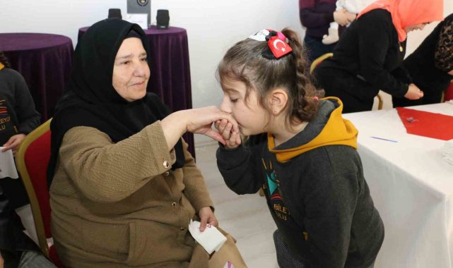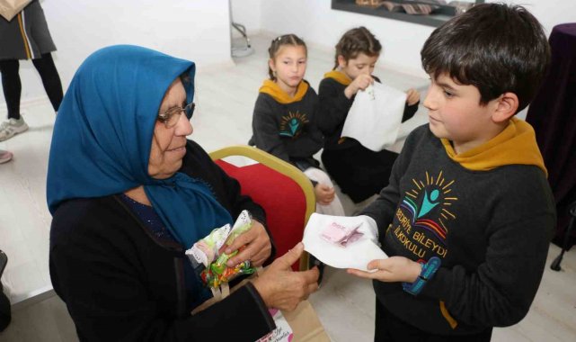 Nineler ve torunları mendil geleneğinde buluştu: Ellerini öptükleri ninelerinin sardığı mendillerden hediyelerini aldılar