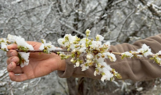 Çiçek açan ağaçların kar altında kaldığını belirten tır sürücüsü Muharrem Bayraktar, "Eğer ayaza çekerse, don olursa bu gece biraz sıkıntı oluşturabilir, inşallah olmaz" dedi.