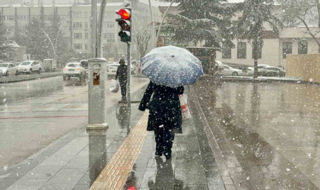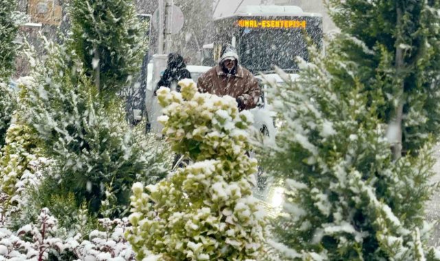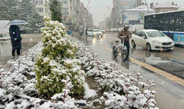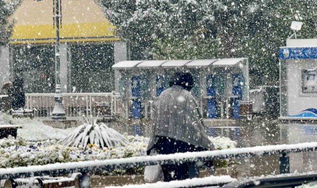 Tokat'ta Nisan ayında lapa lapa yağan kar, kent merkezini beyaza bürüdü.