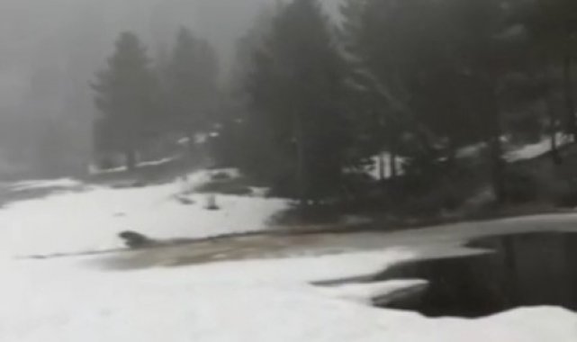 Sivas'ta bayram tatili için memleketlerine gelen amca ve yeğeni, ormanlık alanda yürüyüş yaparken kar yağışına yakalandı. Amca ile yeğeni, Nisan ayında kar yağmasına şaşırdıkları anları cep telefonu kamerasıyla kaydetti.
