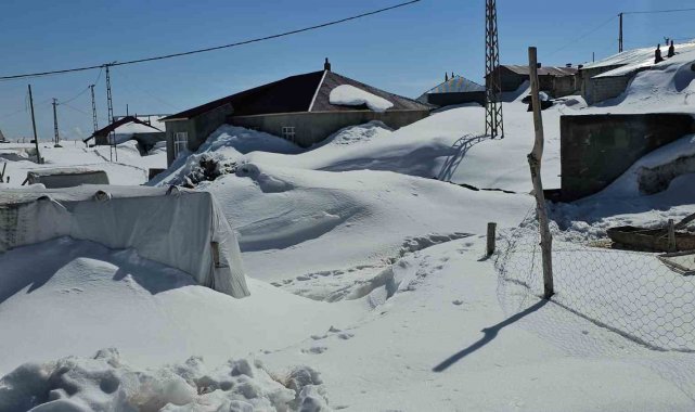Bitlis'in Adilcevaz ilçesi Süphan Dağı eteğindeki Kışkılı Mahallesi, nisanda yer yer 3 metreyi bulan karla baharı bekliyor.