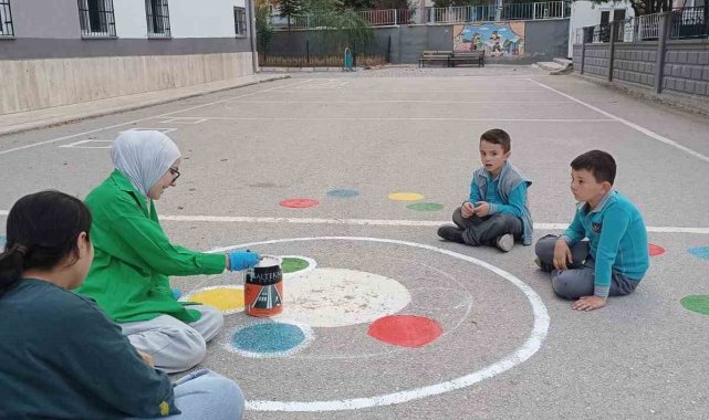 Gönüllü öğrenciler tarafından okul bahçesine çizilen oyun alanları ve etkinlik görselleri, ilkokul öğrencilerinin fiziksel hareketliliğini artırmayı, sosyal etkileşimlerini güçlendirmeyi ve eğlenceli bir öğrenme ortamı sunmayı amaçlıyor. Gerçekleştirilen çalışma sayesinde öğrenciler, teneffüs ve serbest zamanlarını daha verimli ve keyifli bir şekilde değerlendirme imkanı bulacak.
