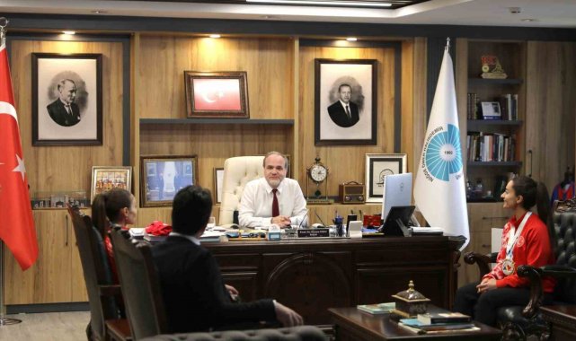 NÖHÜ mezunu milli sporculardan Rektör Uslu'ya ziyaret