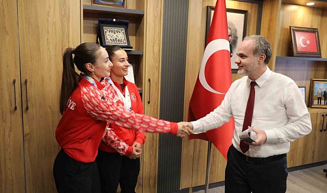 Niğde Ömer Halisdemir Üniversitesi Spor Bilimleri Fakültesi mezunları Aysel Özkan ve Cansel Özkan kardeşler, 13-21 Nisan 2025 tarihleri arasında Moldova'nın başkenti Kişinev'de düzenlenen Avrupa Halter Şampiyonası'nda kazandıkları madalyalarla Niğde Ömer Halisdemir Üniversitesi'ni ziyaret ederek, elde ettikleri başarıları Rektör Prof. Dr. Hasan Uslu ile paylaştılar.
