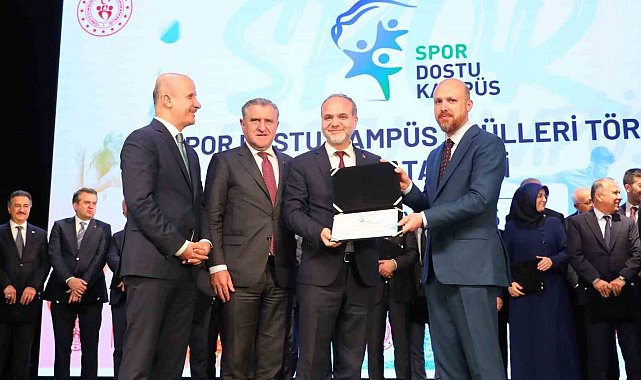Recep Tayyip Erdoğan Üniversitesi ev sahipliğinde düzenlenen Spor Dostu Kampüs Ödülleri Belge Takdimi Töreni'nde, Rektör Prof. Dr. Hasan Uslu'ya "Spor Dostu Kampüs Belgesi", Gençlik ve Spor Bakanı Osman Aşkın Bak, Yükseköğretim Kurulu Başkanı Prof. Dr. Erol Özvar ve Bilal Erdoğan tarafından takdim edildi.
